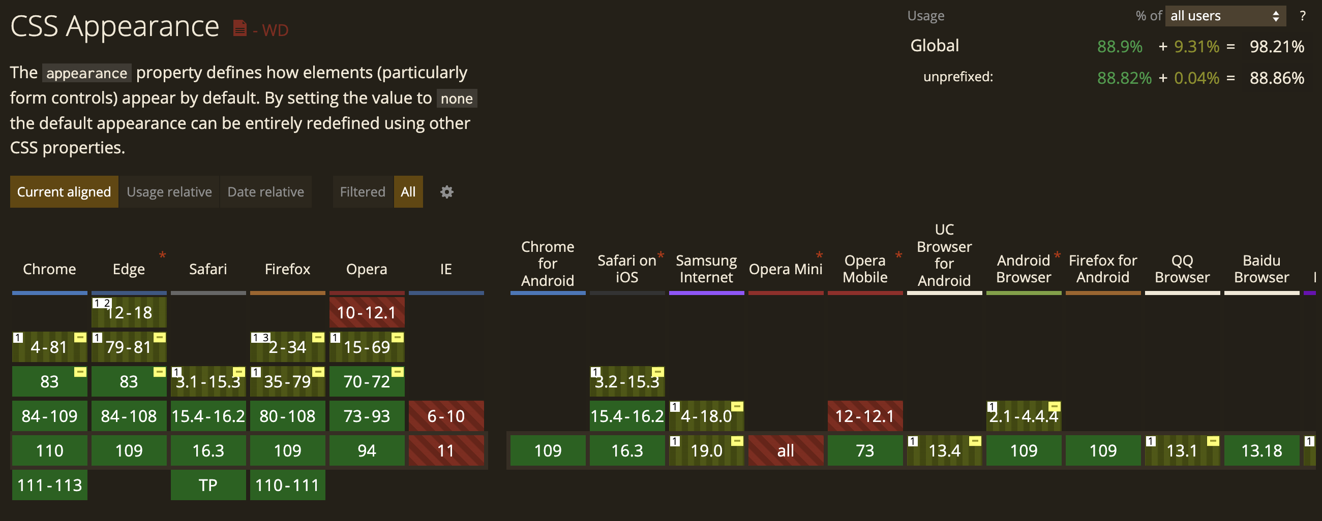 appearance CSS 속성은 운영 체제 테마를 기반으로 하는 UI 컨트롤의 기본 모양을 제어하는 데 사용된다.